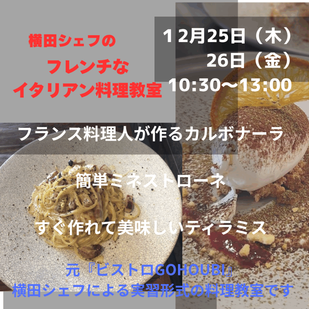 急遽、横田シェフの本格フレンチ料理教室の日程が決まりました!