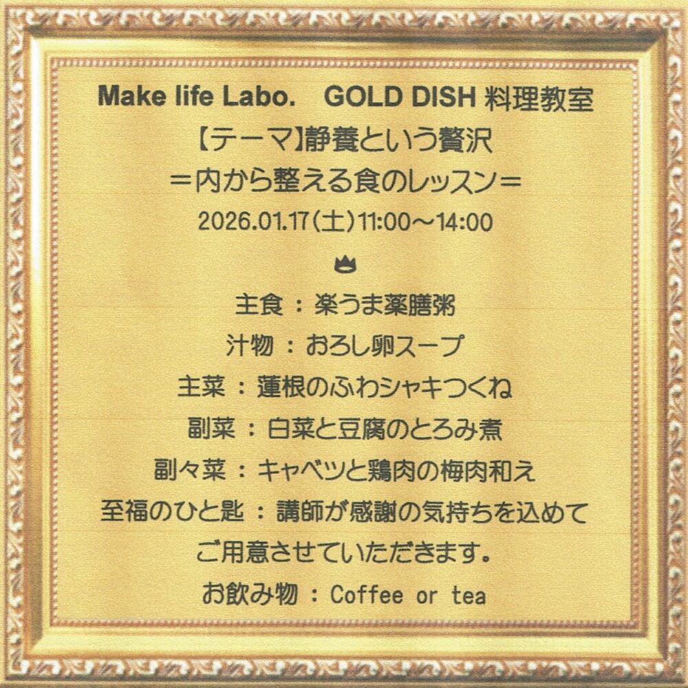 GOLD DISH料理教室の1月は年始年末の暴飲暴食などで