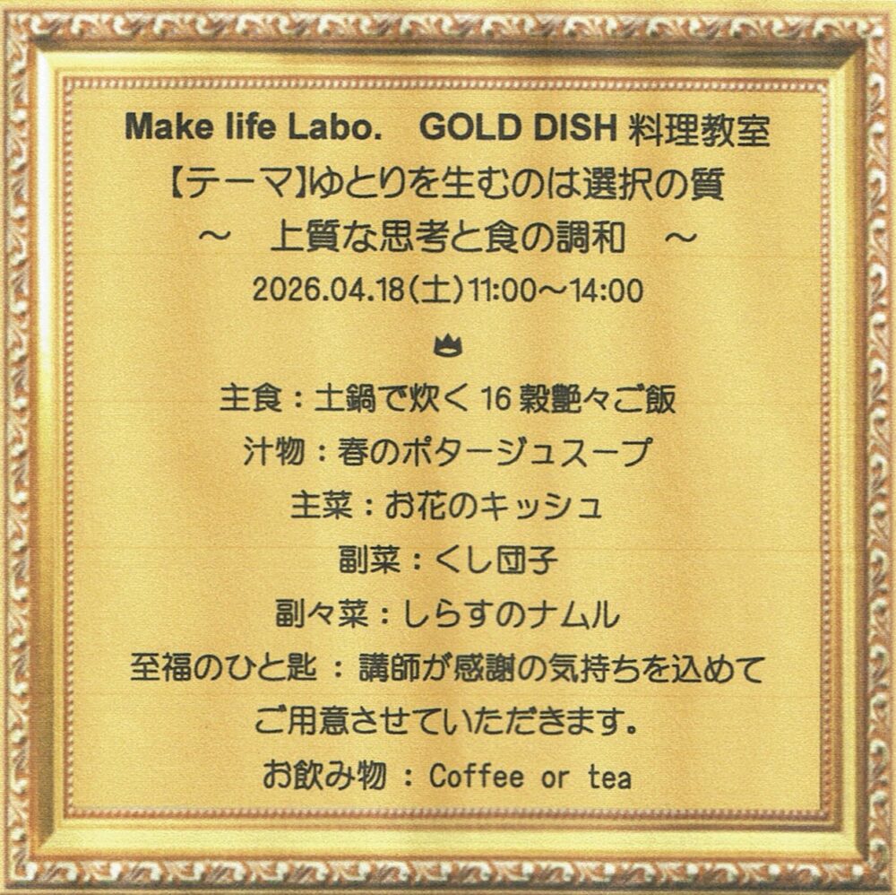 4月18日(土) 11:00~14:00 GOLD DISH料理教室